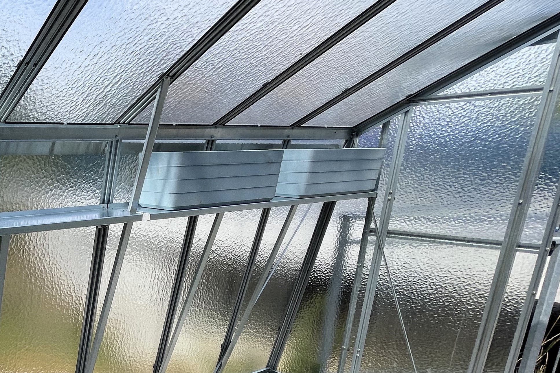 Police Vám umožní odkládat různé potřeby pro pěstování, jako je drobné nářadí, hnojiva atp. Na polici je možné odkládat i malé květináče a pěstovat bylinky nebo převislé plodiny tak, aby Vám nezabíraly místo na pěstební ploše skleníku. Pozor jen na přetížení police, aby nedošlo k poškození skleníku.
