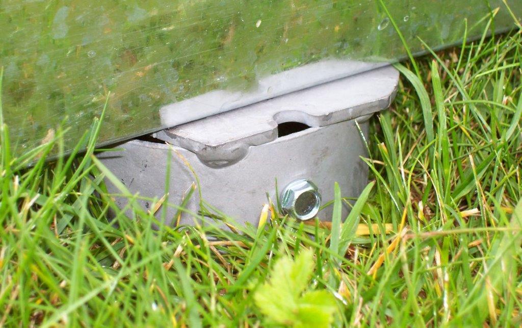 - Zemní vruty slouží pouze pro ukotvení základny, resp. skleníku. Základna musí být po celém obvodu podepřená, tak aby mezi základnou a zemí nebyla mezera. Tu lze vyplnit hlínou a dobře udusat nebo cihlami (dlaždicemi, dřevěnou fošnou, apod.). Vruty je možné zavrtat i mírně pod úroveň okolního terénu (max. cca 1-2 cm). Pak je nutné prostor mezi vruty do této hloubky pro základnu odkopat. Pozor – pro přišroubování víčka vrutu je také nutné trochu odkopat zeminu okolo víčka. Toto řešení má určitou výhodu v tom, že základna zasahuje až na zem a nevznikne volný prostor, který je nutný vyplnit. Pokud necháme mezi zemí a základnou volný prostor, tak do skleníku mohou velmi lehce vlézt drobní hlodavci a škůdci plus může dojít k poškození skleníku podfouknutím větru do skleníku spodem pod základnou.