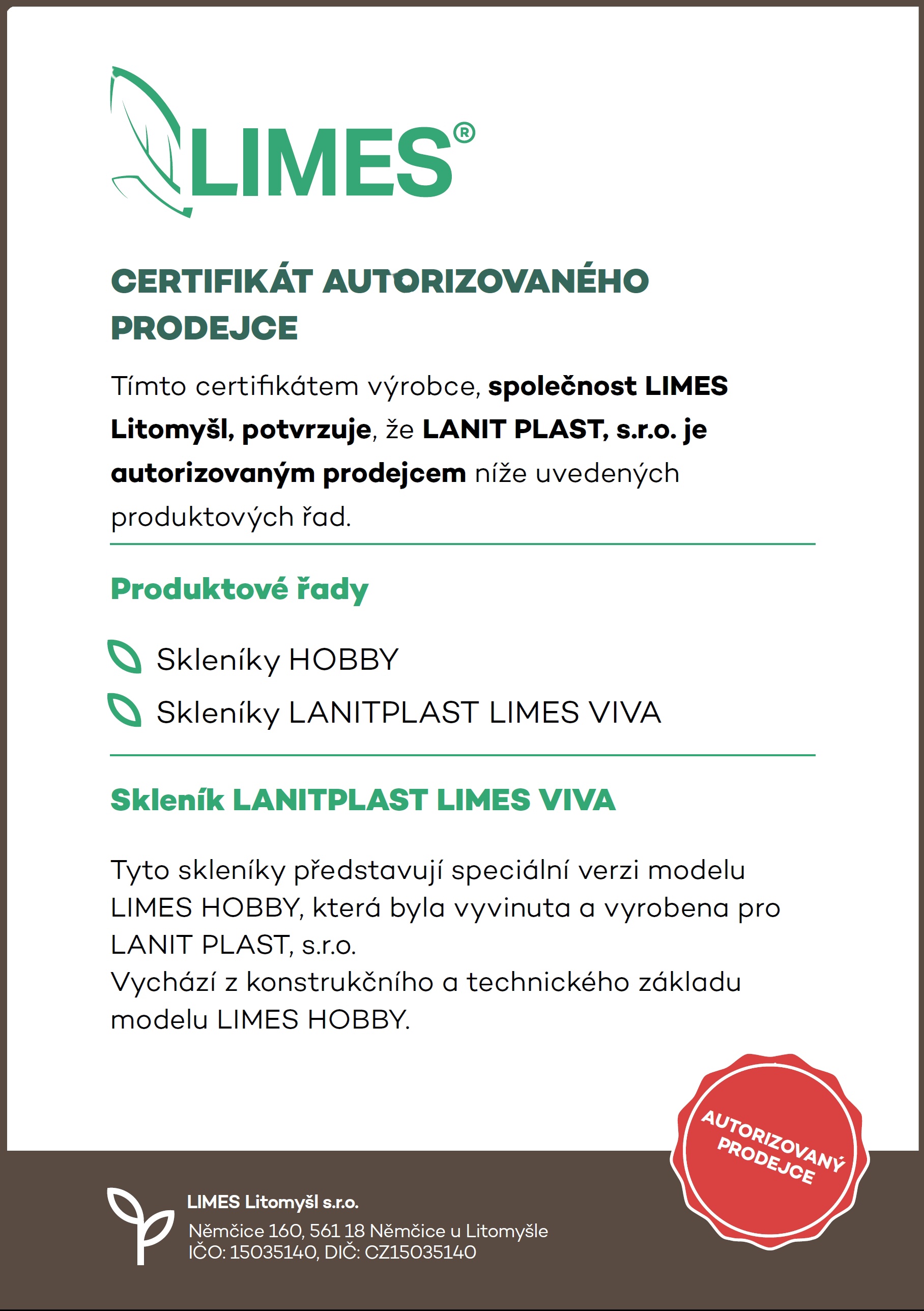Skleník Lanitplast Limes VIVA V7 je vyrobený ve spolupráci firem Limes Litomyšl s.r.o. a LANIT PLAST, s.ro.