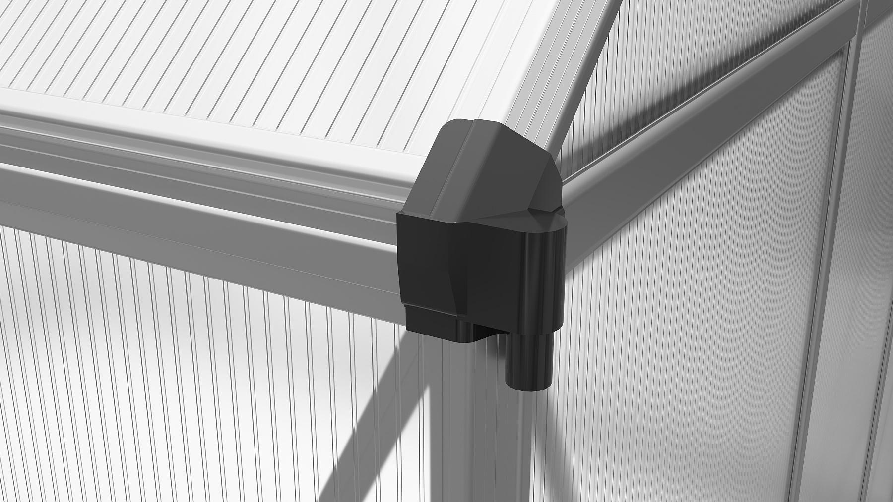Skleníky řady SARANA jsou jedny z nejprodávanějších modelů značkových skleníků LANIT PLAST. Rámová konstrukce je vyrobena z eloxovaných hliníkových profilů, které zaručují dlouhou životnost a vysokou odolnost. Prosklení tvoří dvoustěnné komůrkové polykarbonátové desky o tloušťce 4 mm, které poskytují vynikající tepelně-izolační vlastnosti a optimální ochranu proti UV záření. Desky jsou pevně uchyceny do plochých i rohových H-profilů, čímž je zajištěna maximální stabilita a odolnost celé konstrukce. Skleník je dále vybaven uzavřenými bočními hranami polykarbonátu, které přispívají k jeho dlouhodobé trvanlivosti. Hlavní předností modelu jsou zesílené nosné profily, které výrazně zvyšují jeho pevnost a odolnost vůči povětrnostním podmínkám, jako je silný vítr a sněhové zatížení.