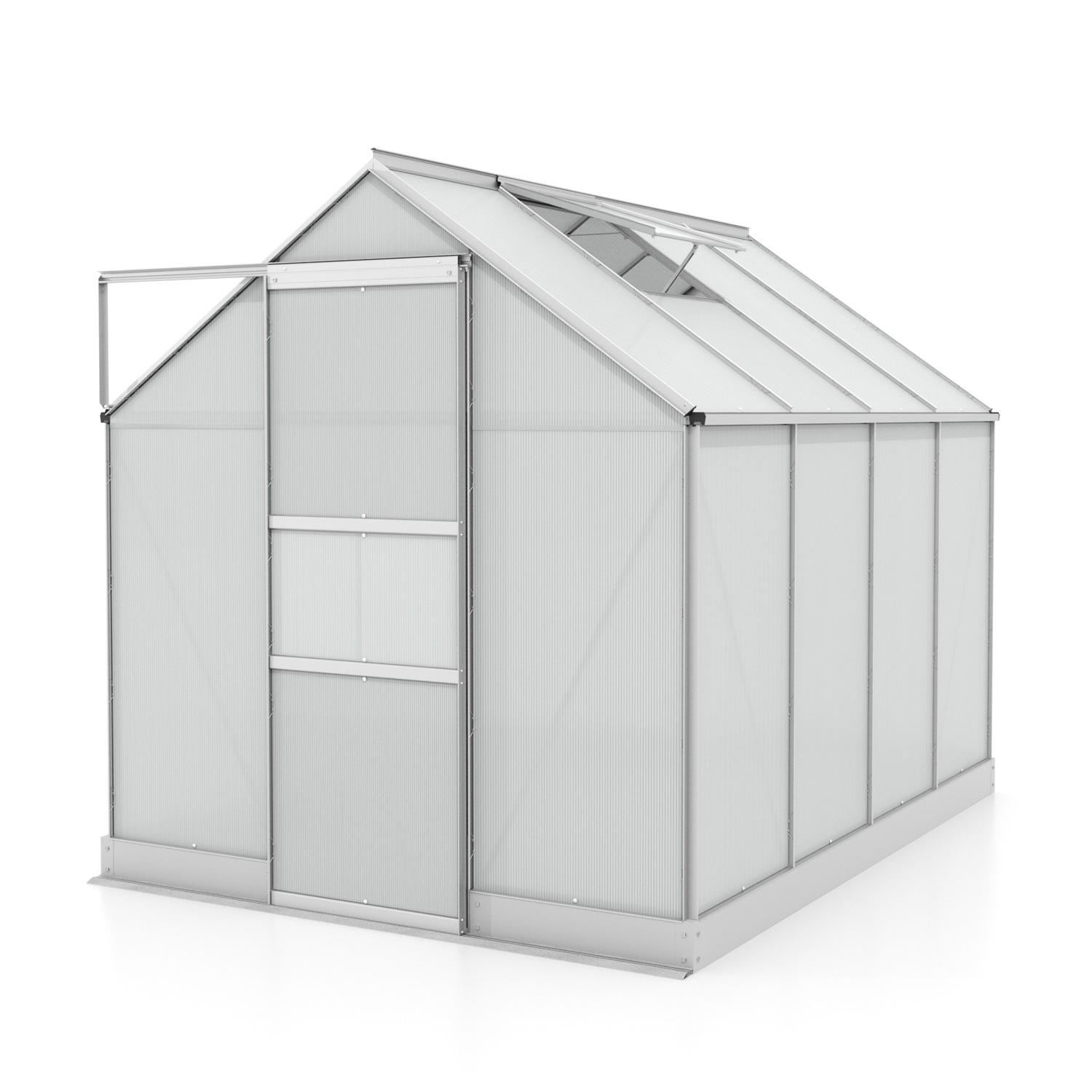 Obsahem balení jsou jednokřídlé posuvné dveře (š x v otvoru = 0,61 x 1,74 m), AL profily, prosklení, pozinkovaná ocelová základna, 1x střešní ventilační okénko s manuálním otevíráním, veškerý spojovací materiál. Ke skleníku je možné dokoupit řadu nadstandardního příslušenství - poličky, regály, další větrací střešní okno, automatický otvírač, okapové sady, teploměry, vlhkoměry, zavlažovací zařízení, elektrické odporové vytápění půdy.