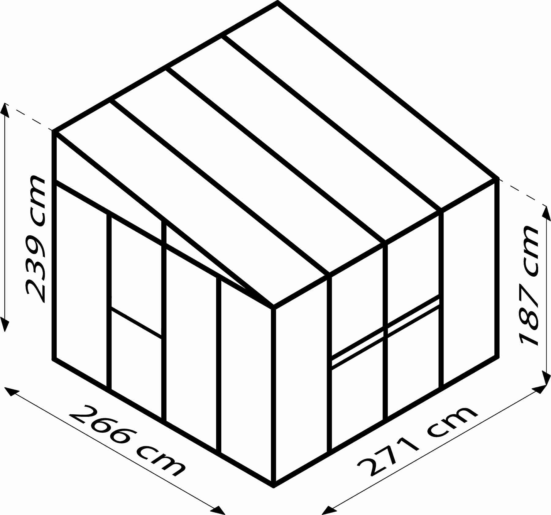 Skleník je určen k montáži ke zdi – zadní stěna není součástí konstrukce.