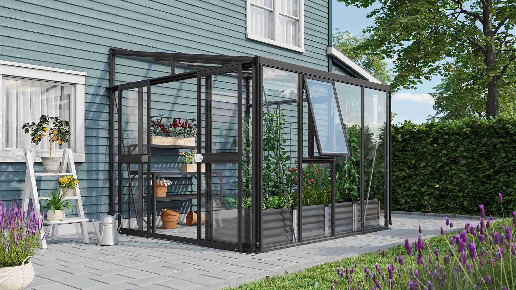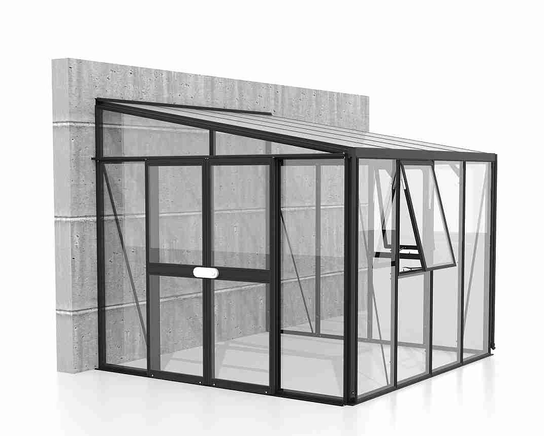 Skleník je určen k montáži ke zdi – zadní stěna není součástí konstrukce.