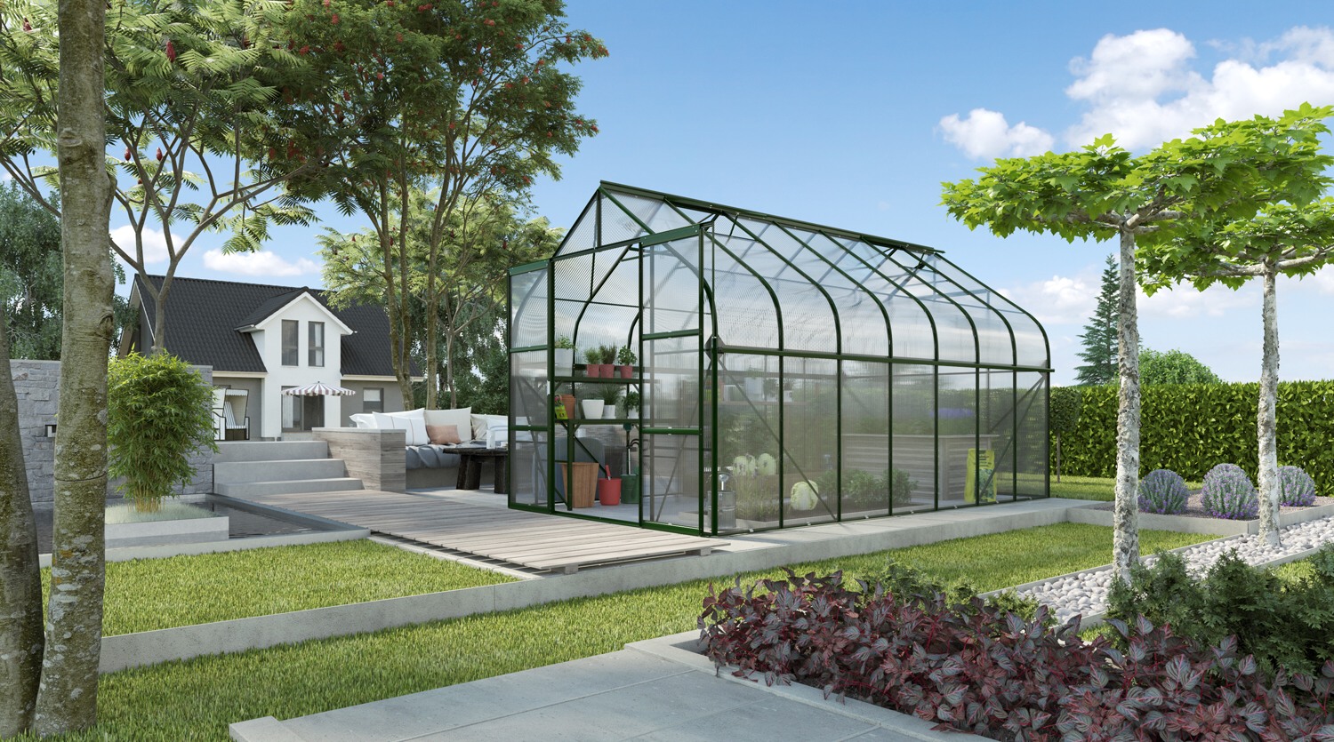 Skleníky řady DIANA jsou zařazeny do kategorie PREMIUM - skleník je vyrobený značkovým výrobcem z Velké Británie. Skleník je vyrobený z eloxovaných hliníkových profilů. Prosklení je z tepelně-izolačních komůrkových polykarbonátových desek síly 4 mm. Prosklení je do hliníkových profilů kotveno pomocí ocelových sponek.