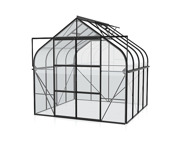 Skleníky řady DIANA jsou zařazeny do kategorie PREMIUM - skleník je vyrobený značkovým výrobcem z Velké Británie. Skleník je vyrobený z eloxovaných hliníkových profilů, prosklení je z kaleného čirého skla síly 3 mm. Čiré sklo zajišťuje výbornou světelnou propustnost, takže do skleníku je krásně vidět ze všech stran a kdykoliv se můžete pokochat pohledem na pěstovanou zeleninu nebo květiny. Prosklení je do hliníkových profilů kotveno pomocí ocelových sponek.