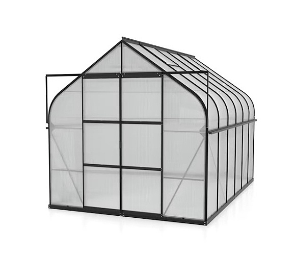 Obsahem balení jsou dvoukřídlé posuvné dveře (š x v otvoru = 1,22 x 2,00 m), AL profily, prosklení, pozinkovaná ocelová základna, 2x střešní ventilační okénko s manuálním otevíráním, veškerý spojovací materiál. Ke skleníku je možné dokoupit řadu nadstandardního příslušenství - poličky, regály, další větrací střešní i boční okénka, automatické otvírače k těmto okénkům, okapové sady, teploměry, vlhkoměry, zavlažovací zařízení, elektrické odporové vytápění půdy.