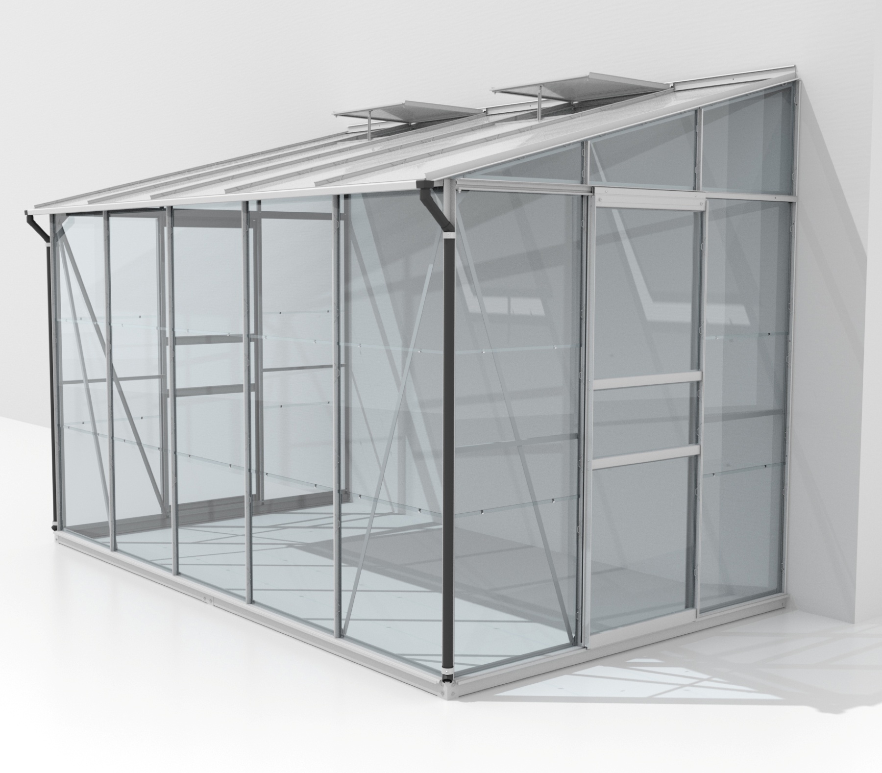 Skleník je určen k montáži ke zdi – zadní stěna není součástí konstrukce.