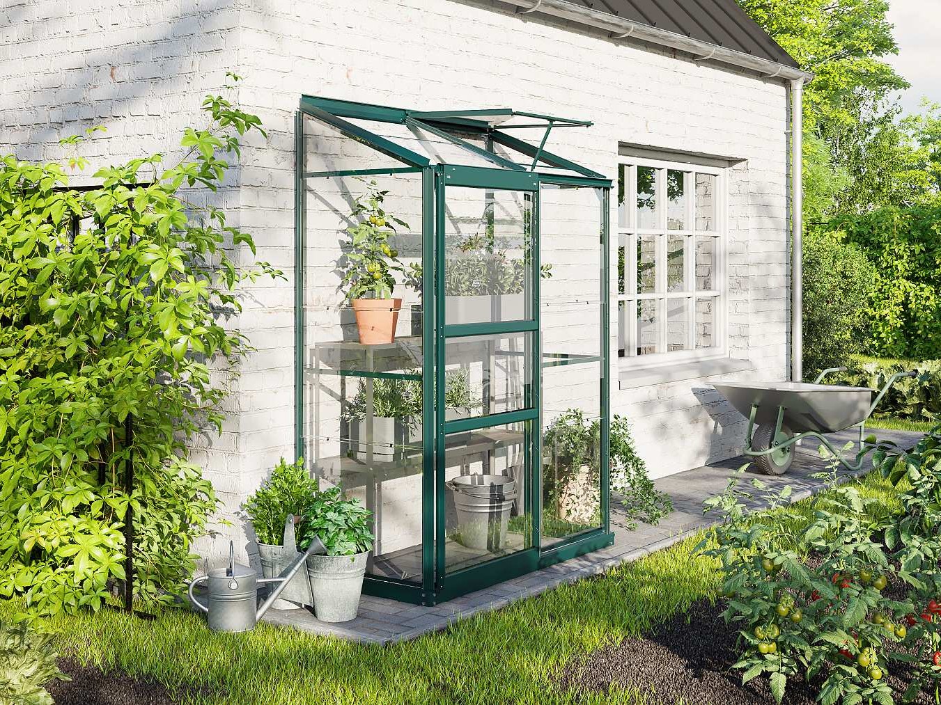 Skleník je určen k montáži ke zdi - zadní stěna není součástí konstrukce.