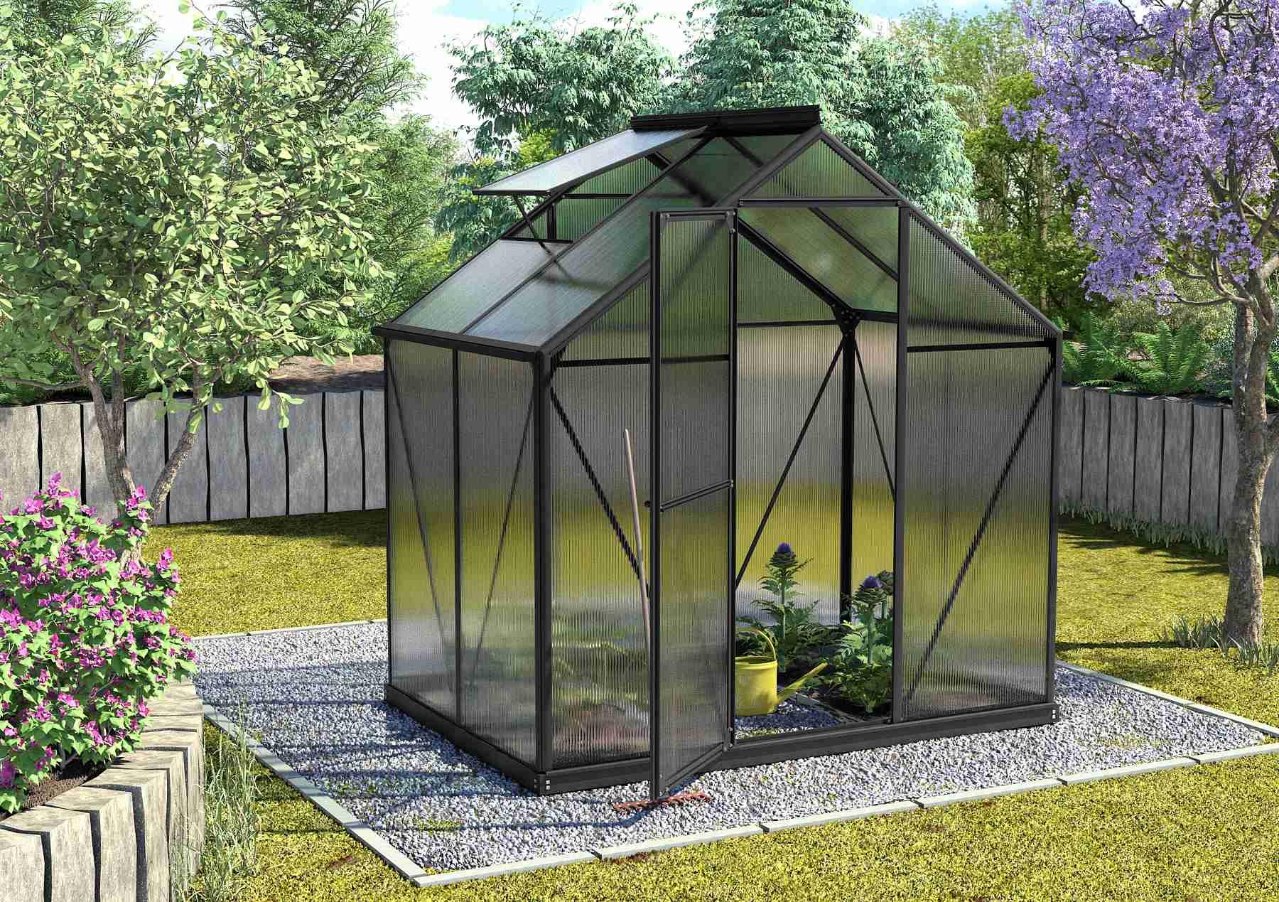 Obsahem balení jsou jednokřídlé dveře na pantech (š x v otvoru = 0,61 x 1,64 m), AL profily, prosklení, pozinkovaná ocelová základna, 1x střešní ventilační okénko s manuálním otevíráním, veškerý spojovací materiál. Ke skleníku je možné dokoupit řadu nadstandardního příslušenství - poličky, regály, další větrací střešní i boční okénka, automatické otvírače k těmto okénkům, okapové sady, teploměry, vlhkoměry, zavlažovací zařízení, elektrické odporové vytápění půdy.
