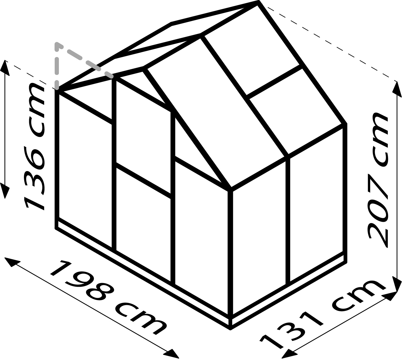 Velkou výhodou tohoto modelu skleníku je možnost instalovat dveře jako posuvné nebo klasické na pantech. Dveře na pantech lze instalovat jako pravé nebo levé.