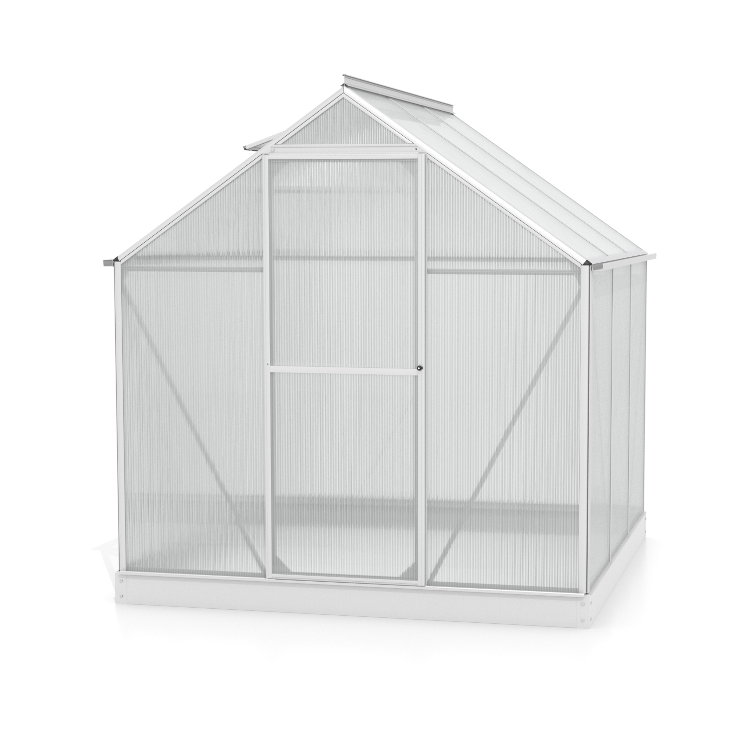 Obsahem balení jsou jednokřídlé dveře na pantech (š x v otvoru = 0,61 x 1,64 m), AL profily, prosklení, pozinkovaná ocelová základna, 1x střešní ventilační okénko s manuálním otevíráním, veškerý spojovací materiál. Ke skleníku je možné dokoupit řadu nadstandardního příslušenství - poličky, regály, další větrací střešní i boční okénka, automatické otvírače k těmto okénkům, okapové sady, teploměry, vlhkoměry, zavlažovací zařízení, elektrické odporové vytápění půdy.