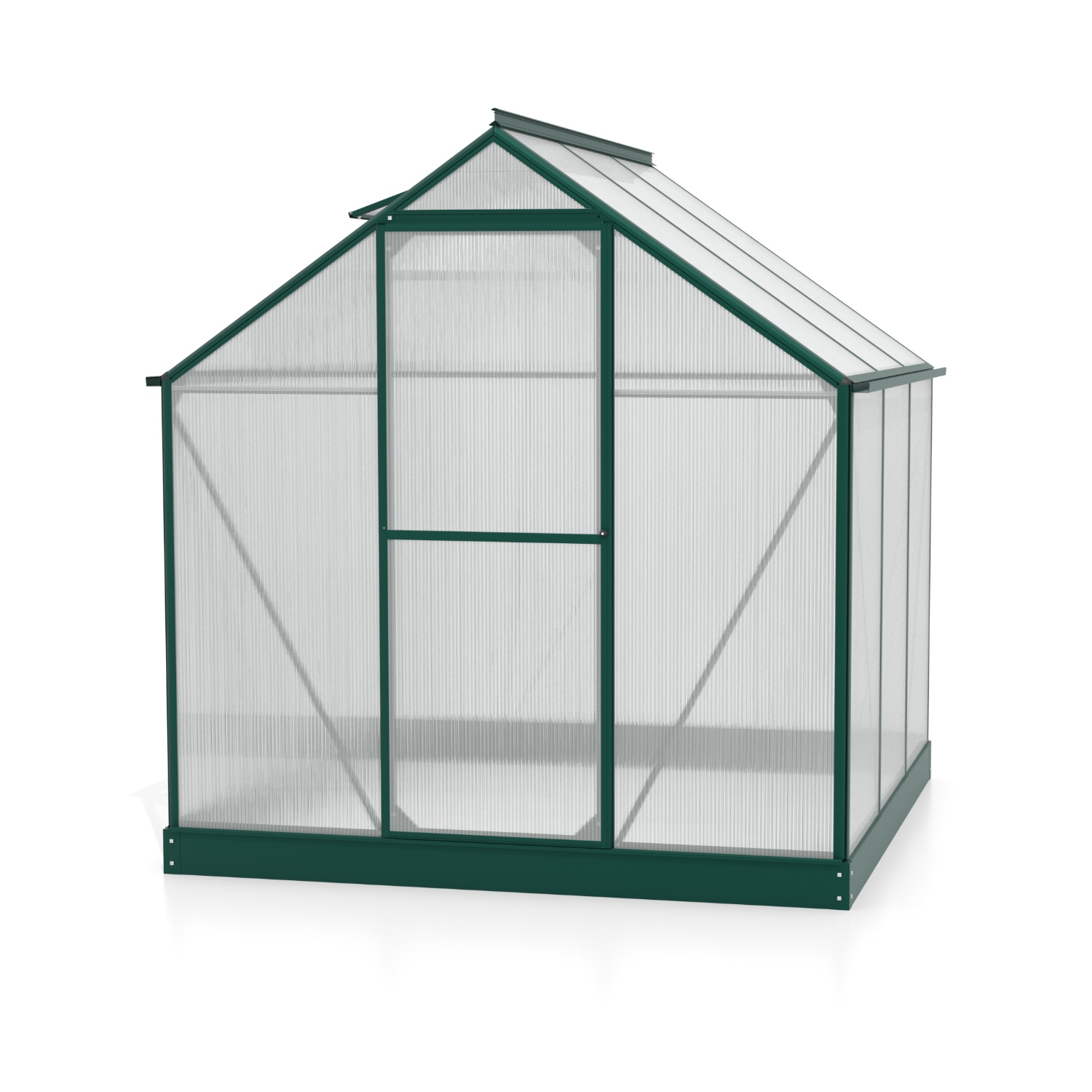 Obsahem balení jsou jednokřídlé dveře na pantech (š x v otvoru = 0,61 x 1,64 m), AL profily, prosklení, pozinkovaná ocelová základna, 1x střešní ventilační okénko s manuálním otevíráním, veškerý spojovací materiál. Ke skleníku je možné dokoupit řadu nadstandardního příslušenství - poličky, regály, další větrací střešní i boční okénka, automatické otvírače k těmto okénkům, okapové sady, teploměry, vlhkoměry, zavlažovací zařízení, elektrické odporové vytápění půdy.