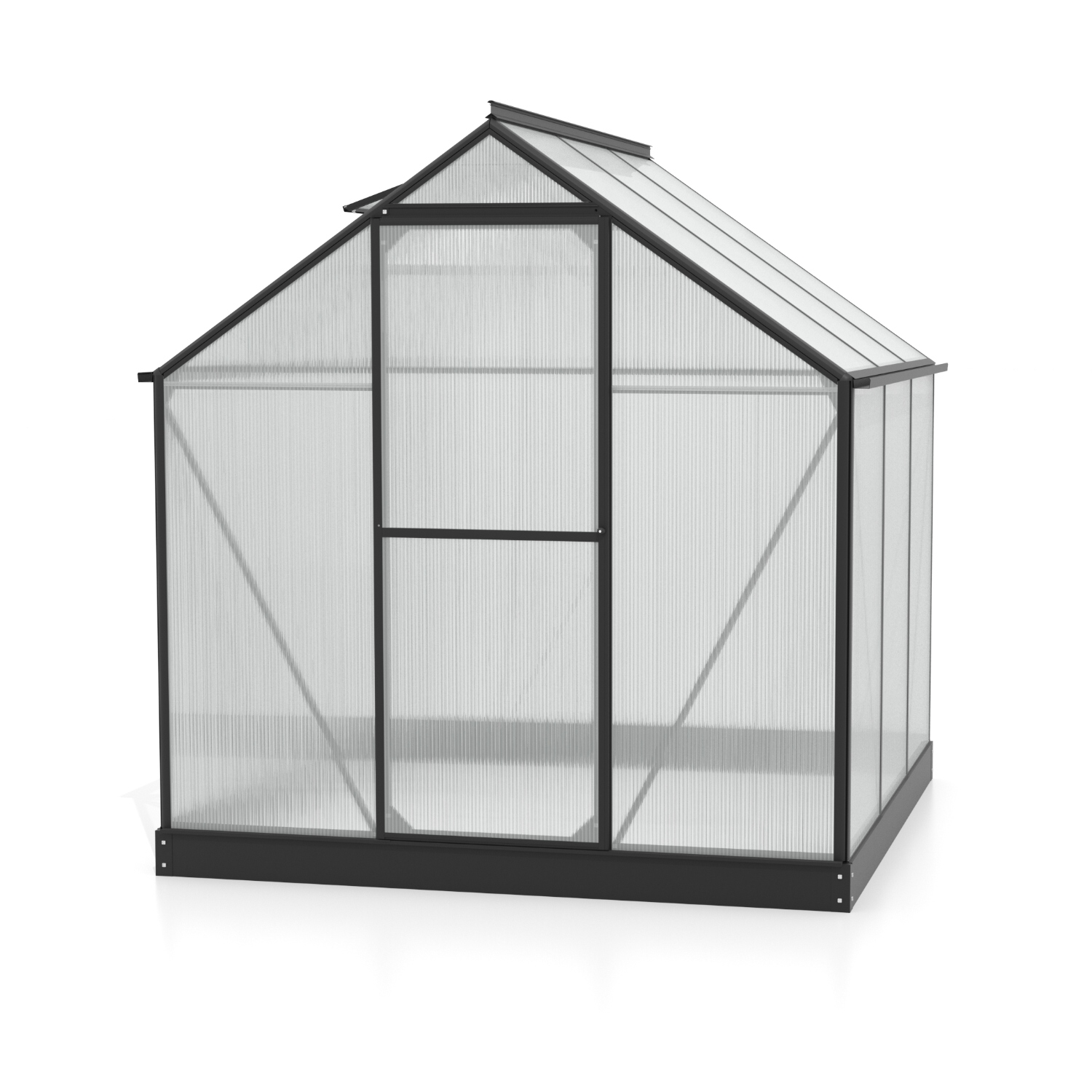 Obsahem balení jsou jednokřídlé dveře na pantech (š x v otvoru = 0,61 x 1,64 m), AL profily, prosklení, pozinkovaná ocelová základna, 1x střešní ventilační okénko s manuálním otevíráním, veškerý spojovací materiál. Ke skleníku je možné dokoupit řadu nadstandardního příslušenství - poličky, regály, další větrací střešní i boční okénka, automatické otvírače k těmto okénkům, okapové sady, teploměry, vlhkoměry, zavlažovací zařízení, elektrické odporové vytápění půdy.