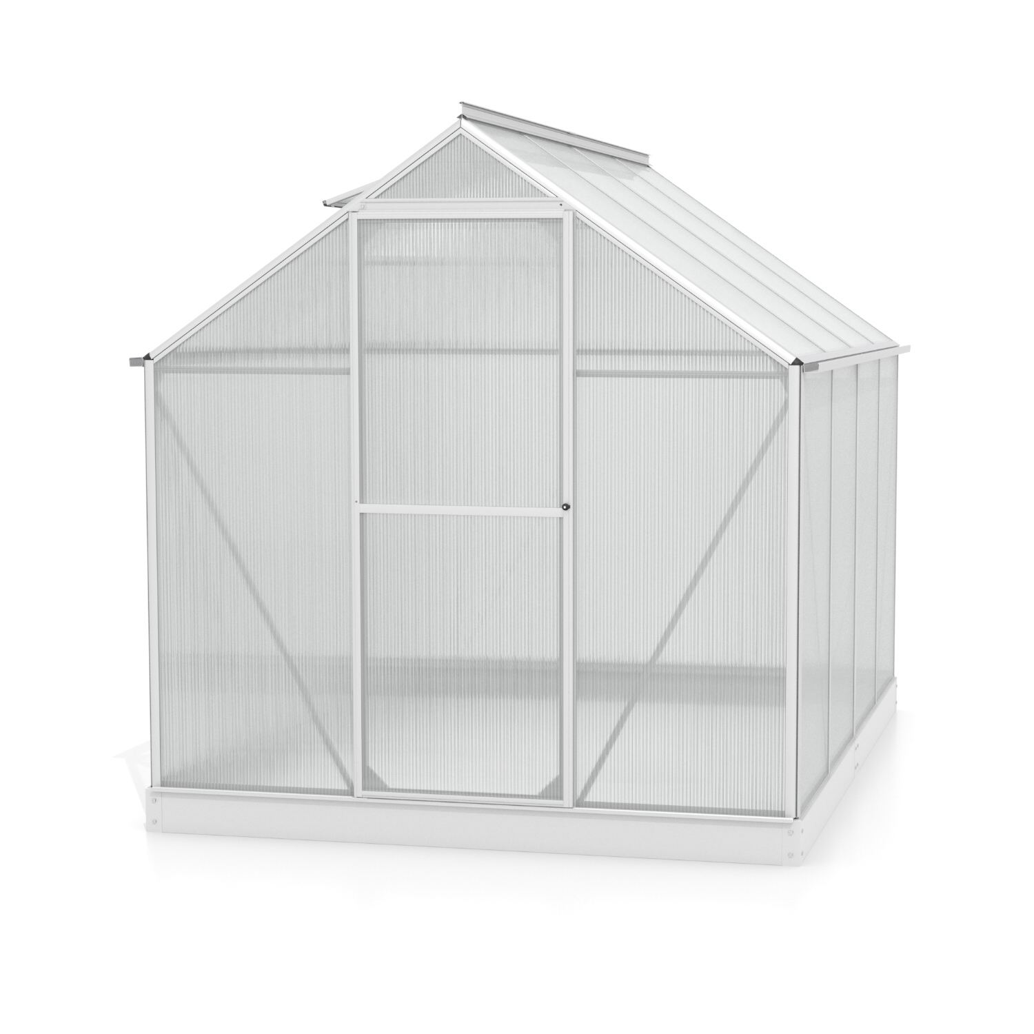Obsahem balení jsou jednokřídlé dveře na pantech (š x v otvoru = 0,61 x 1,64 m), AL profily, prosklení, pozinkovaná ocelová základna, 1x střešní ventilační okénko s manuálním otevíráním, veškerý spojovací materiál. Ke skleníku je možné dokoupit řadu nadstandardního příslušenství - poličky, regály, další větrací střešní i boční okénka, automatické otvírače k těmto okénkům, okapové sady, teploměry, vlhkoměry, zavlažovací zařízení, elektrické odporové vytápění půdy.