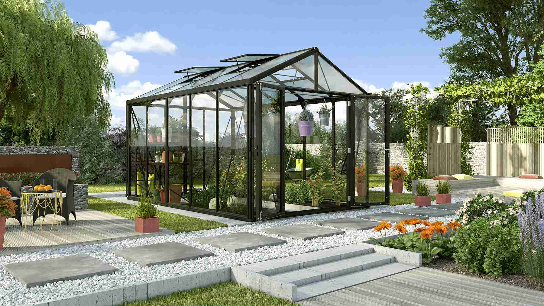 skleník VITAVIA ZEUS COMFORT 10000 sklo 3 mm + PC 10 mm černý