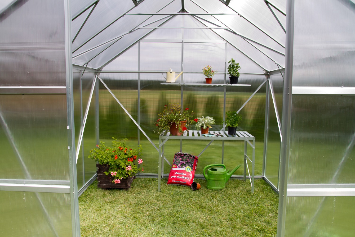 - pozinkovaná ocelová zakladna pro ukotvení skleníku je přiložena ZDARMA jako DÁREK