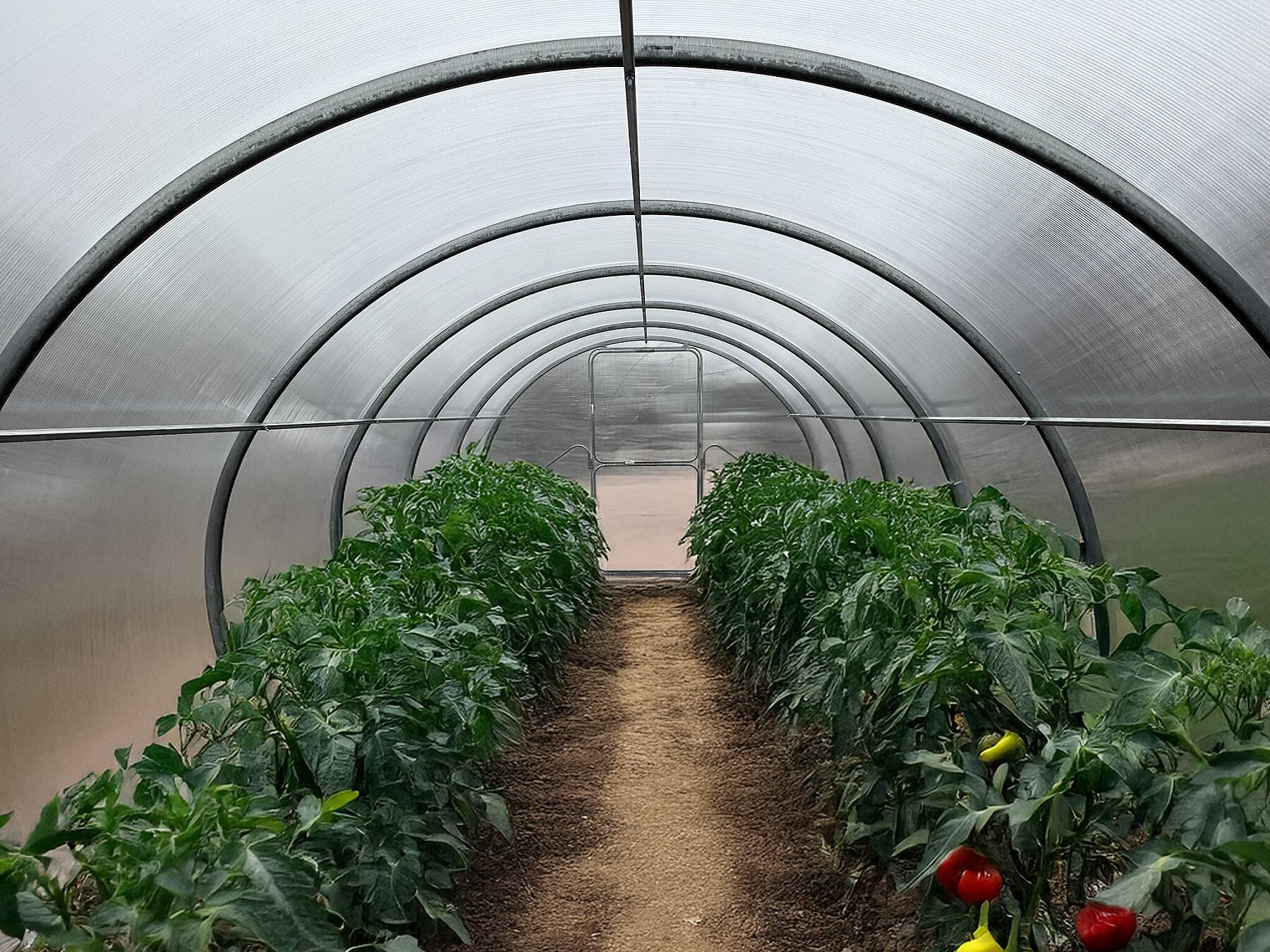 Skleník má dvoje dveře - je průchozí.