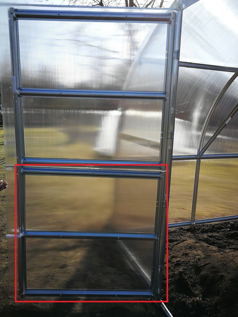 Dodatečné zadní dveře pro skleník LANITPLAST GLADUS. Konstrukce dveří je vyrobená z žárově pozinkovaných ocelových profilů síly 1 mm a šířky 56 mm. Jde o jednu z nejkvalitnějších antikorozních úprav. Dveře doporučujeme zakoupit současně s novým skleníkem, tzn. nákup si pečlivě rozmyslete předem, jestli nutně potřebujete průchozí skleník nebo ne, protože jen při stavně nového skleníku je zajištěn správný přesah polykarbonátu přes hranu dveří. Při dodatečné montáži do už hotového skleníku (= do již oříznutých desek na zadní straně skleníku) může docházet k mírným netěsnostem mezi křídlem a rámem dveří. Dveře se zabudují na zadní čelo skleníku pod ventilační okno. Pevně zabudovaný polykarbonát pod oknem namontujete na pohyblivé křídlo dveří a z ventilačního okna tím vytvoříte dvoukřídlé dveře.