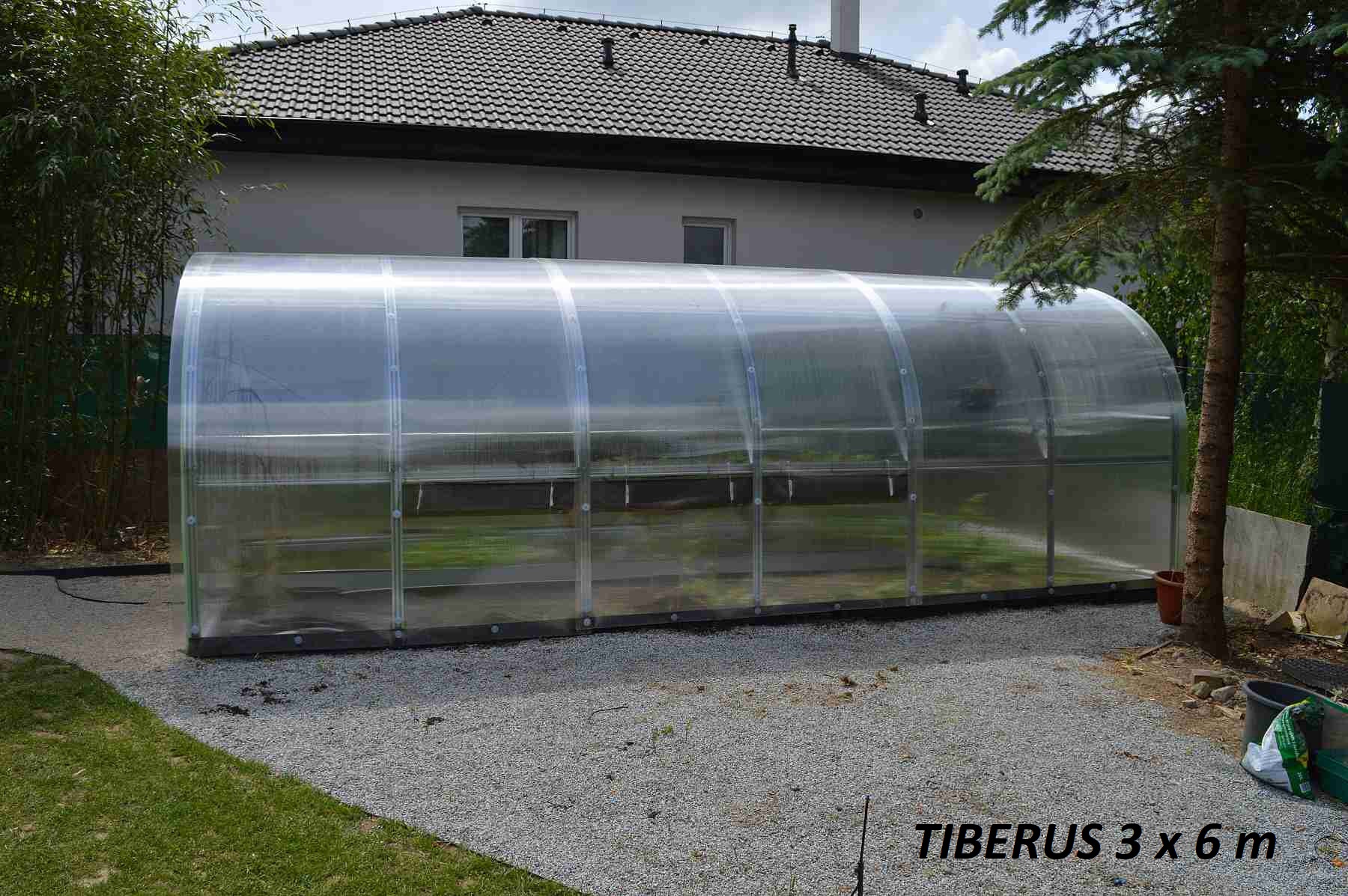 Konstrukce skleníku je sestavena ze silných nosných oblouků (žárově pozinkované ocelové profily síly 1 mm a šířky 56 mm) a doplněna prémiovým komůrkovým polykarbonátem s UV filtrem od britské firmy BRETT MARTIN. Tato kombinace dělá ze skleníků řady LANITPLAST TIBERUS jeden nejkvalitnějších a současně na montáž nejjednodušších skleníků na českém trhu. Jednotlivé profily se vzájemně sešroubují a po jejich sestavení vznikne velmi stabilní oblouková konstrukce bez nutnosti stavby skleníkové podezdívky. Skleník je vybaven kotvami přímo do země. Montáž skleníku zvládnete svépomocí ve dvou až třech osobách. V půdě se zahradní skleník upevňuje zakopáváním patek konstrukce do země, případně jejich zalitím do betonu (doporučujeme).
